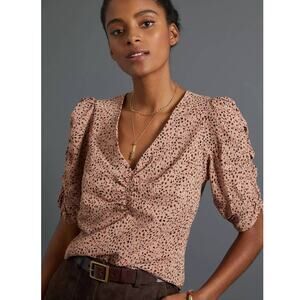New Anthropologie Sleek Ruched Blouse by Bishop + Young $120 SMALL Pink