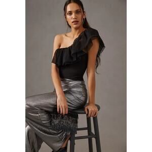 New Anthropologie Sunday in Brooklyn One-Shoulder Top $78 LARGE PETITE Black
