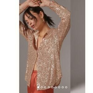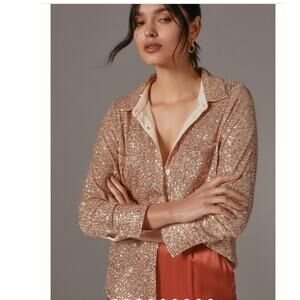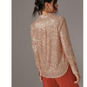 New Anthropologie Sunday in Brooklyn Sequin Buttondown $130 SMALL Rose