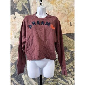 New Anthropologie Sundry Dream Maroon Cotton Cut Off Sweatshirt Sweater 1