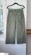 Anthropologie Maeve Colette linen blend pants in light green with white stitching that looks like a sage. This is the magic fabric edition that includes a linen blend. Wide leg, cropped style with high-rise waist.