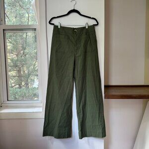 New Anthropologie The Colette Cropped Wide Leg Pants Maeve Linen Green 29 Tall
