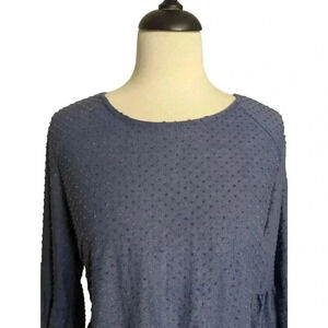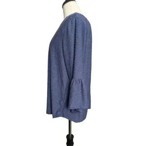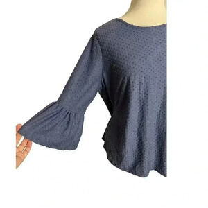 New Anthropologie W5 XL Blue Textured Swiss Dot 3/4 Bell Sleeve Back Zip Blouse