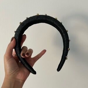 New Anthropologie black faux raffia jeweled headband