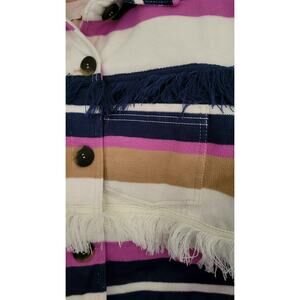 New Anthropologie by Alexandra Bueno Stripe Fringed Buttondown Jacket $398 SMALL
