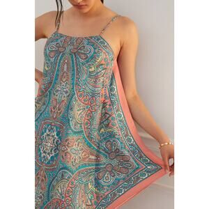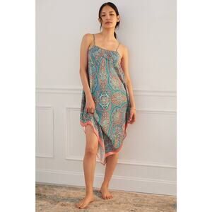 New Anthropologie by Tiny Flowy Asymmetrical Midi Dress $148 Small Turquoise