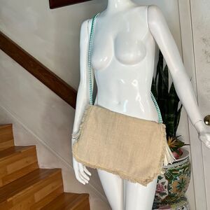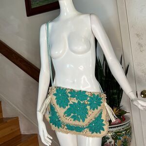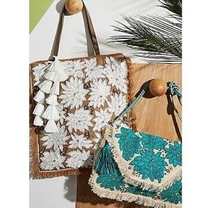 New Anthropologie ibBan Purse Mansi Straw Crossbody Envelope Clutch Beaded T…