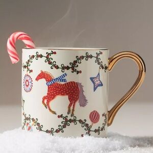 New Anthropologie juniper stoneware Christmas mug white Horse