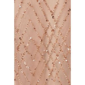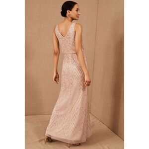 This v-neck blouson maxi is fully embellished with shimmering beads sewn by hand in an eye-catching geo pattern.