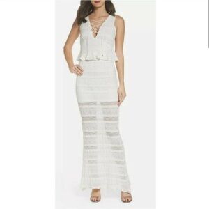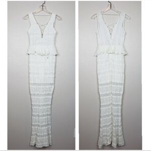 New! Anthropologie x Foxiedox Makalya Peplum Lace Maxi Dress Ivory NWT