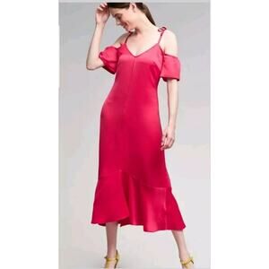 New Anthropologie x Seen Work Kept Satin Open Shoulder Midi Dress $168 Size 6