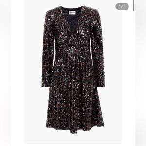 This dress is absolutely stunning and sold out!!! This is such a beautiful, well made dress, perfect for any upcoming celebration or event!! The intricate sequin detail is everything and the luxe detailing doesn’t disappoint- check out the lace up sleeve detail! This dress is fully lined, with heavily hand-sequined design, its pleated hem line is so flattering and the lace up detail on the sleeves is beautiful!