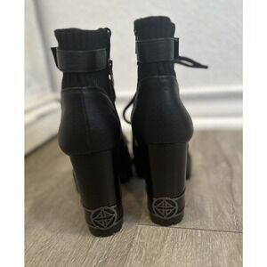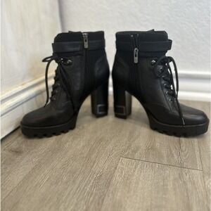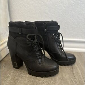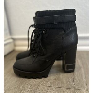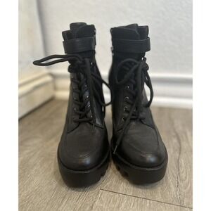 New Antonio Melani 9.5 Perline Leather Lac Up Platform Heel Booties Black