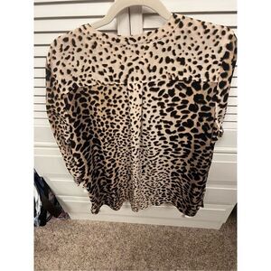 New Apt. 9 Semi Sheer Blouse Animal Print Long Sleeves Half Zip Front size XL