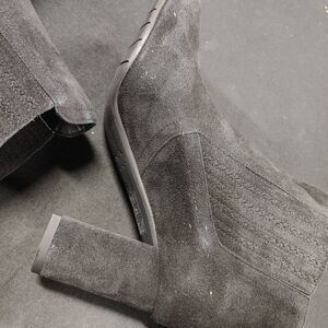 New Aquatalia Lanna Black Silky Suede 75mm Heeled Ankle Booties 6