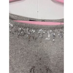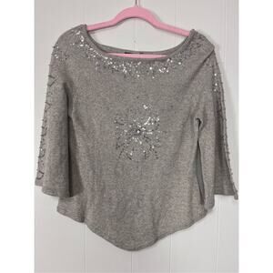 Description: 3/4 Sleeve, heather gray, a few sequins loose, but none missing