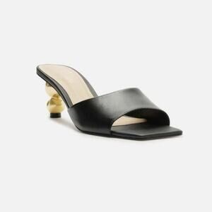 New Arezzo Blair Mid Stiletto Sandals Gold Geometric Chunky Heel Black 6.5B