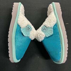 New Ariat Jackie Square Toe Slippers Metallic Turquoise 6
