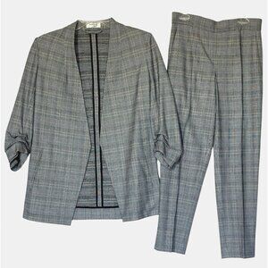 New Aritzia Babaton Gray Plaid Power Open Blazer + Pants 2 PC Suit Set
