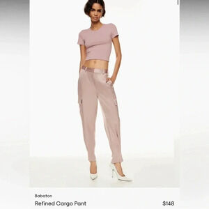 New Aritzia Babaton Refined Cargo Pants High Waist Satin in Blush Pink