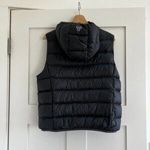 This is a hooded puffer vest that packs into an interior pocket. Wear it on its own or as a toasty extra layer under coats and jackets when the temperature really drops. It’s made with Lite Shine — technical, water-repellent fabric. This version is featherweight, wind resistant and has a pearlescent finish with a soft feel.