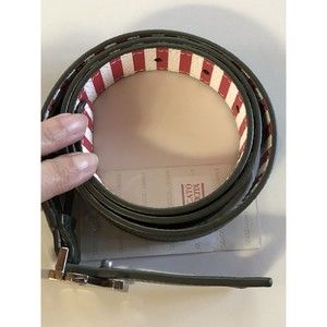 This stylish green leather belt from Armani Exchange is perfect for women who want to make a fashion statement. With an angled cutout logo design, this waist belt is perfect for adding a touch of elegance to any outfit. It is a skinny belt with a size of S, made with high-quality material. The belt is brand new with tags, so you can be confident that you are getting a quality product. The belt is solid in pattern and green in color, making it versatile enough to match any outfit. It's a great addition to any wardrobe, and a perfect gift for someone special.