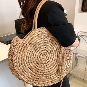 New Arrival Summer Beach Woven Rattan Bag Strap Accessory With Tassel Decoration