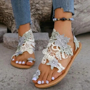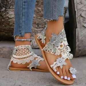 New Arrival Summer Cross-Border Women's Flat Sandals With Strap And Flower Decor
