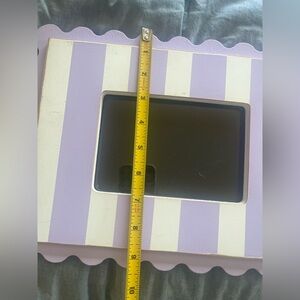 Set of two picture frames. One with purple and white stripes. One with purple and white polka dots. Perfect for adding a playful touch to any room. In good preowned condition. Please see last three pics for marks / scuffs.
