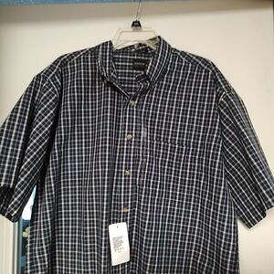 New with tag arrow short sleeve button down shirt size men's L. It is navy blue checked 24 inches across and 30 inches long.