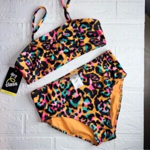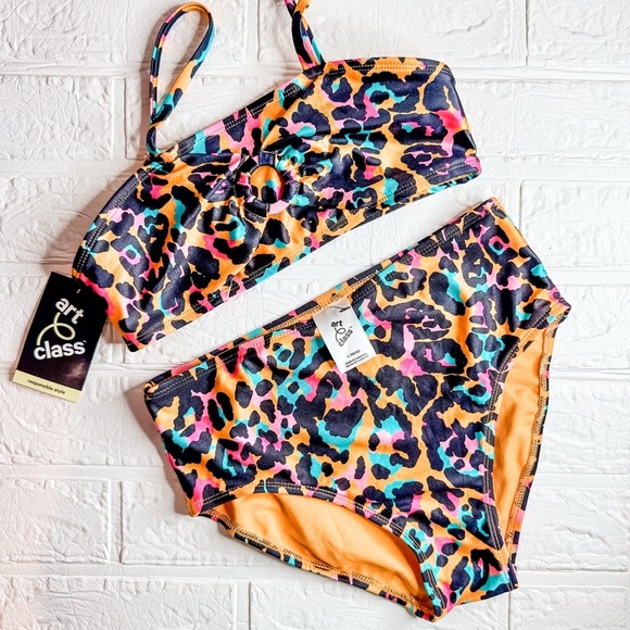 New Art Class Kids Swim Set - Multicolor Leopard Print Size L (10/12)