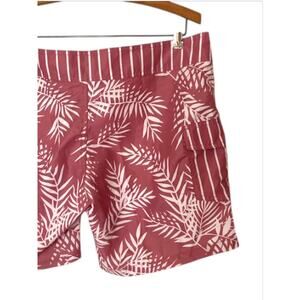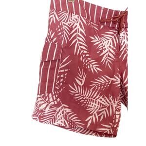 48Get ready to show off a little tropical style the next time you're at the beach or pool with these mauve swim shorts. It has multiple pockets, velcro & drawstring closure, and a white palm print all over. New with tags.