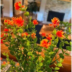 Brighten up your day- The 12 Bundles of lifelike red orange artificial fake flowers bring the lush beauty of nature into your life, creates a cozy ambiance, without any of the maintenance or mess. Rest your mood and wonder.