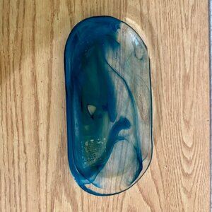 New Artistic Accents Blue Swirl Oval Serving Tray/Trinket Dish 10 " x 6 "