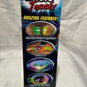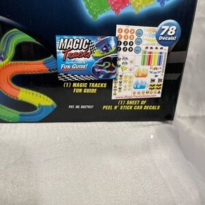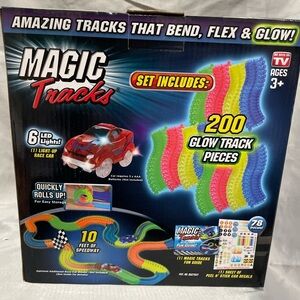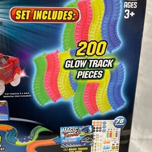 Magic Tracks set with glow-in-the-dark technology. Includes flexible tracks and a vibrant car. Perfect for imaginative play.