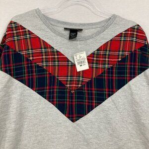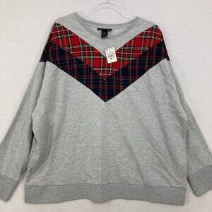 New Ashley Sport size 22/24 Gray Red Plaid Stretch Knit Pullover Sweatshirt
