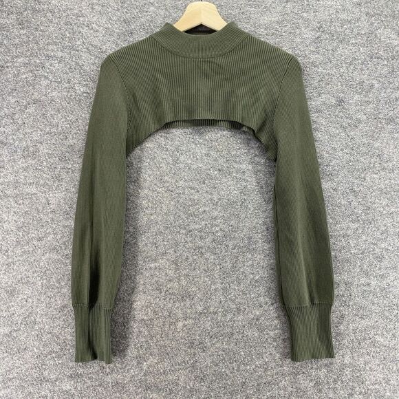 New Ashley Stewart Cropped Top Women 14/16 Gray High Neck Long Sleeve Rayon