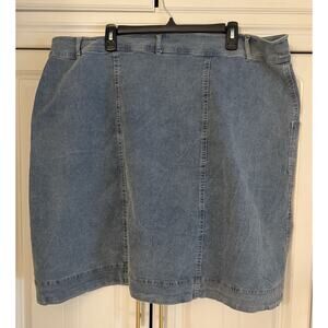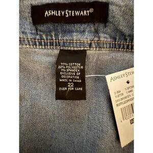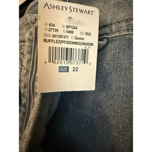 Women’s new with tags Ashley Stewart Ruffle Trimmed Denim Stretch Jean Skirt Front Zipper, Size 22.