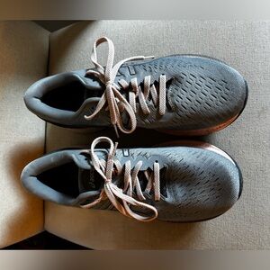Charcoal sneakers with peach accents. Comfortable and stylish. Ideal for running. Make sure you have support with every stride.