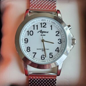 New Aspen Unisex Watch Silver Tone AP 3092 Basket Weave Steel Band Watch 30M