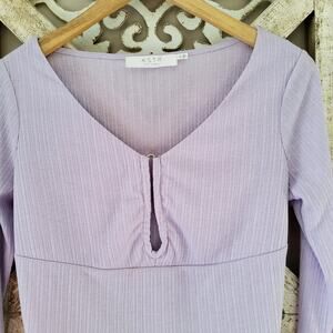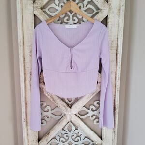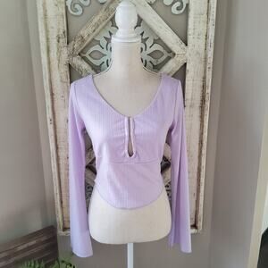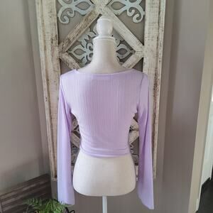 Purple size medium ribbed long bell sleeve cropped u-ring top by Astr.