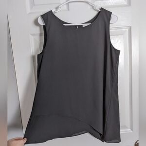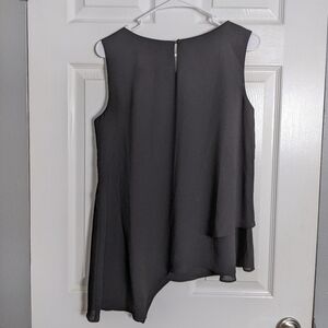 New, NWOT, Bisou Bisou, Bisou Bisou Michele Bohbot, Black, Classic, Classy, Asymmetrical Hem, Asymmetrical, Tank, Sleeveless, Tank Top, Blouse, Key Hole Back, Flowy, Chiffon, Polyester, Business, Career, Office, Business Casual, Work, Workwear, Size Medium, Size M, Women, Woman, Women's, Designer, Beautiful, Pretty, Sheer Layers, Lined, Stunning, Gorgeous, 100% Polyester, Date Night, Day to Night