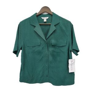 New Athleta Lightweight Echo Top Collared Button Down Shirt Emerald Green Small