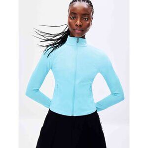 New Athleta M Salutation Crop Jacket Aqua Blue Medium Regular