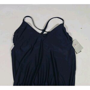 New Athleta Side Scrunch Tankini Top Cross Back Size 40 B/C Blue UPF 50+ Swim