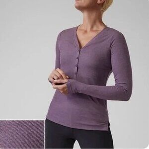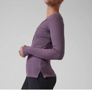 New Athleta Uptempo Ribbed Henley Top In Regal Plum XS extra small