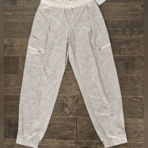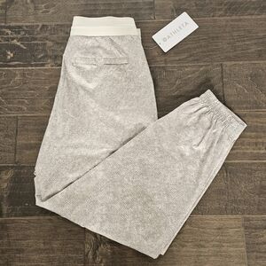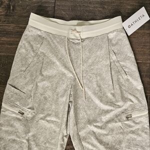 Beautiful Brand New with Tags and Buttery Soft Athleta Joggers. Semi-Fitted, Skims Easily Over the Body with a Mid-Rise Waistband. Featherweight Stretch is Made of Recycled Polyester and is Light as Air. Seven Pocket Jogger with a Cream Colored Elastic Waistband and Drawstrings. Two Zip Pockets and a Slide Pocket Located on the Legs. Slide Front Hip Pockets and Two Back Zipped Pockets. These Joggers are Perfect for Workouts or Dressy Events.