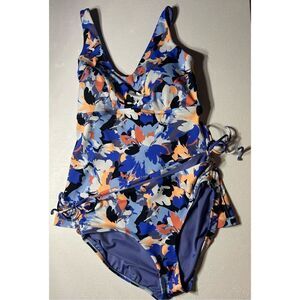New Athleta L Swim Set Floral Triangle Tankini + L Cinch Full Bikini Bottom wome