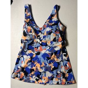 Athleta L Swim Set Floral Triangle Tankini + L Cinch Full Bikini Bottom