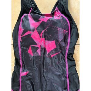New Athletic High Waisted One Piece swimsuit Hot pink & black Galactic Design S